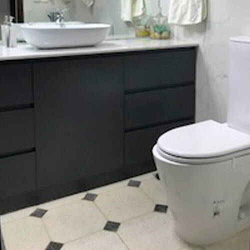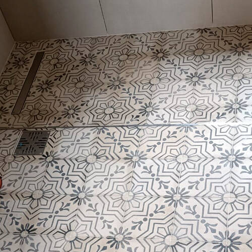 Piso colocado en baño - mosaico granítico con taco - Arq. Picerno