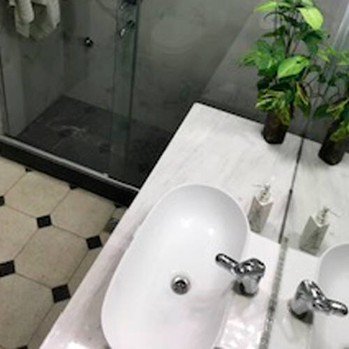 Calcáreo decorativo (Mario Cesca S.A) , colocado en baño - Arq. Picerno