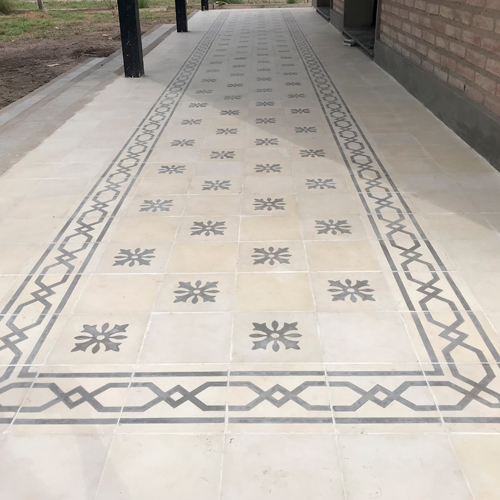 Piso Calcáreo Hexagonal -colocado en la casa de una clienta