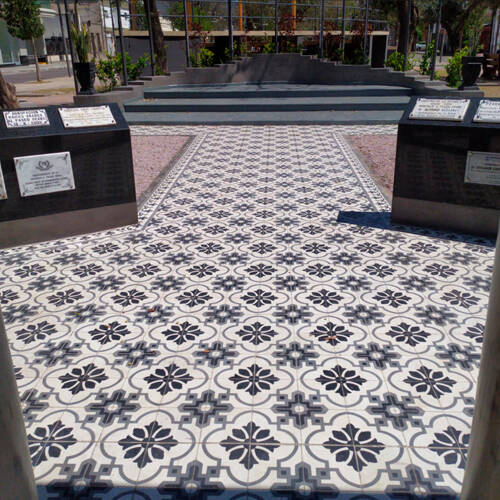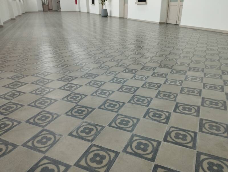 Calcáreo Decorativo (Mario Cesca S.A), restauración de pisos en escuela Centenario.